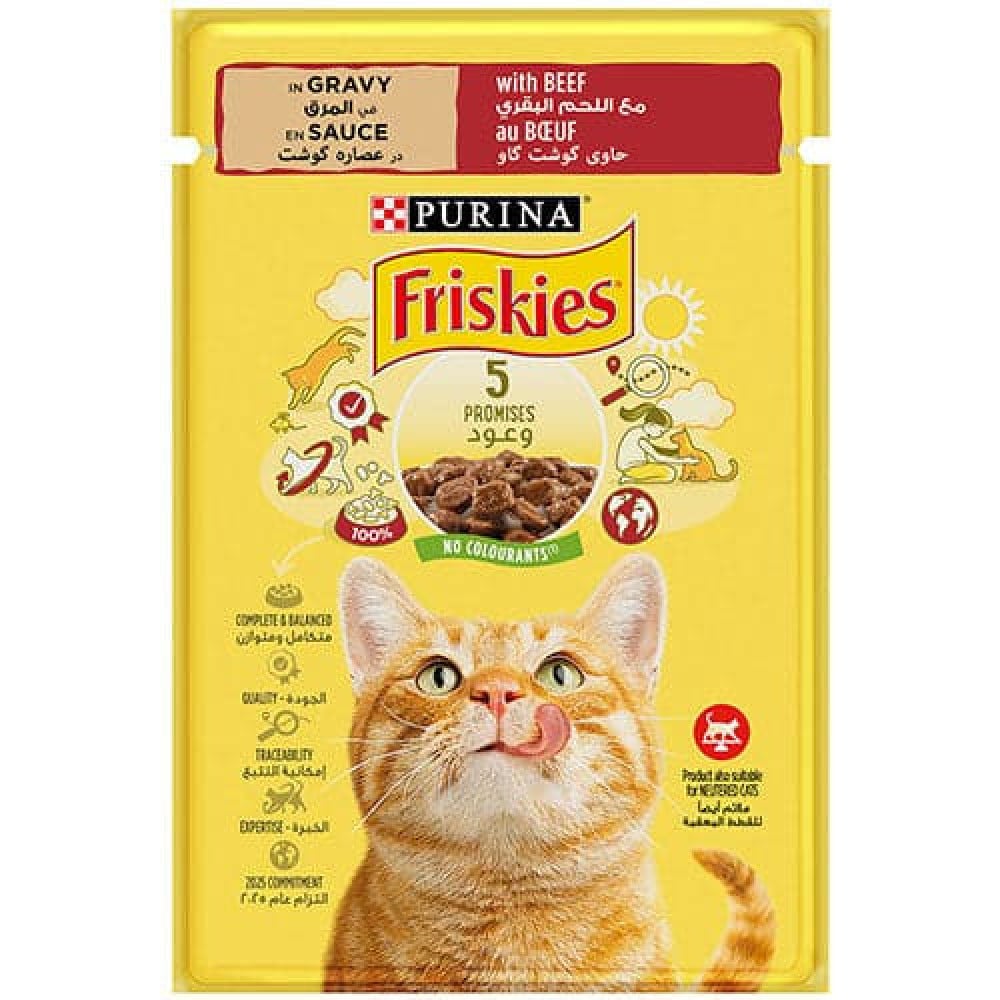 بورينا فريسكيس قطع الحم البقري في المرق 85g