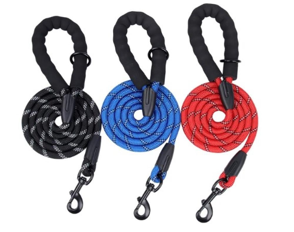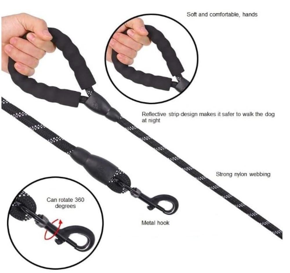 حبل كلب قوي بمقبض مريح، حبل عاكس للضوء