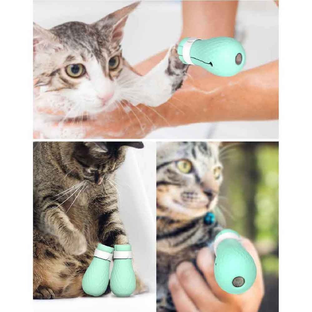 حذاء للحماية من الخدش , ضد الماء و متعدد الإستعمالات للقطط أو الكلاب الصغيرة مصنوع من السيلكون المرن ليناسب جميع المقاسات و ليوفر الراحة لأقدام صديقك الأليف. يتميز بسهولة تركيبة ونزعة , يستعمل أثناء تحميم القط لكي يمنعه من خدشك أو حين تحليق شعره لكي يحمي أقدامه ويحميك من أظافره. تأتي الـ4 قطع بعلبة واحدة.