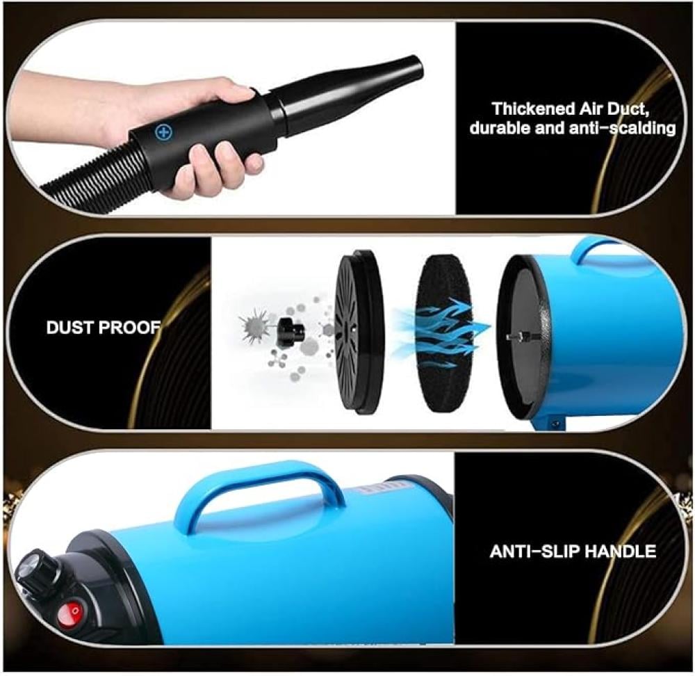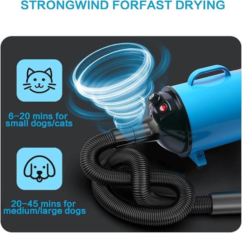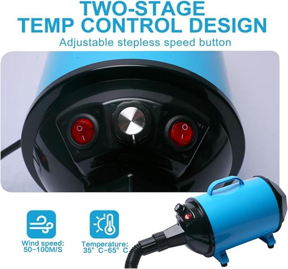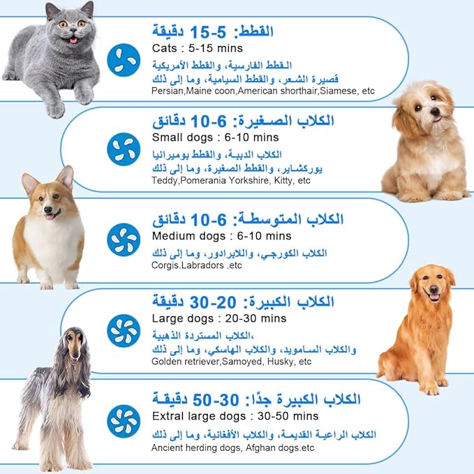【هواء قابل للتعديل】: يتميز مجفف شعر الحيوانات الأليفة بدرجة حرارة قابلة للتعديل، درجة حرارة منخفضة 35 درجة، درجة حرارة عالية 70 درجة. مجفف الشعر يمكنه تمشيط الشعر بسرعة، ويمكن أن يقلل من طاقة الرياح في المناطق الحساسة، حسب احتياجاتك. ملاحظة: قد تحتاج الحيوانات الكبيرة أو الحيوانات ذات الفراء إلى مزيد من الوقت لكي تجف.